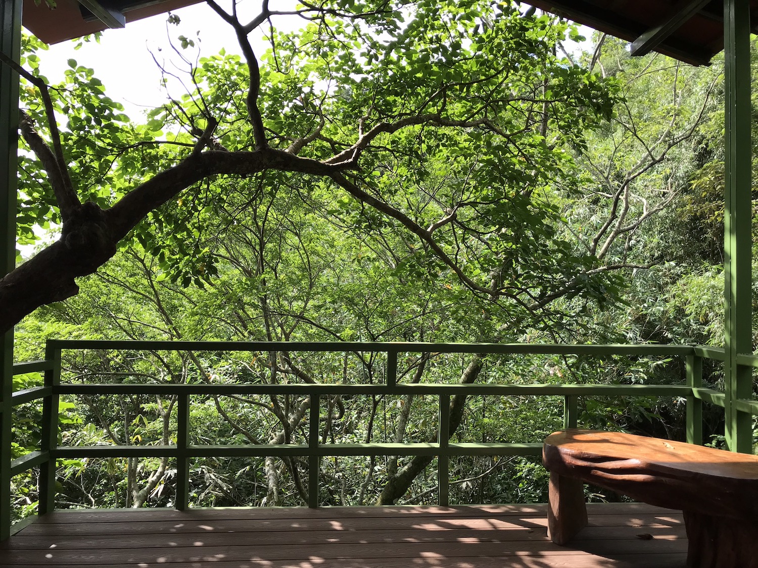 從陽台延伸視野,是一大片鬱鬱蒼蒼的森林....海洋就在遠方那端