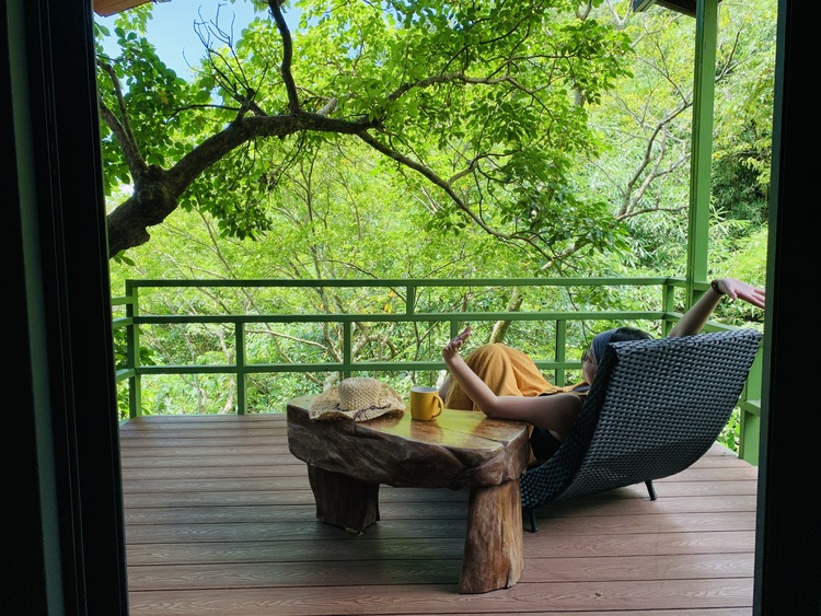 陽台小歸小,但聽著樹下潺潺的流水聲 一邊感受著徐徐微風帶來的涼意..還是很舒服的!